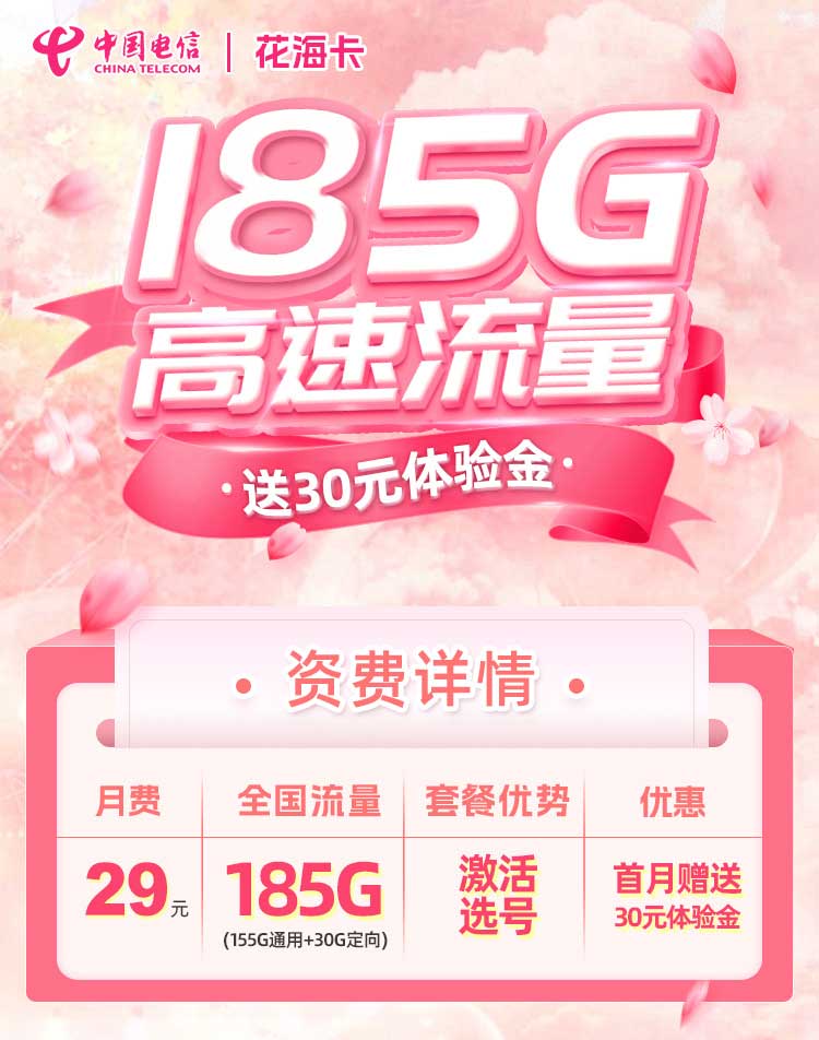 ps:现在29元就可以实现流量自由,这个机会真的不把握住吗?过了这个村就没这个店啦!0元领卡,包邮到家!立即开启月享185G大流量,从此打开流量自由新世界的大门!